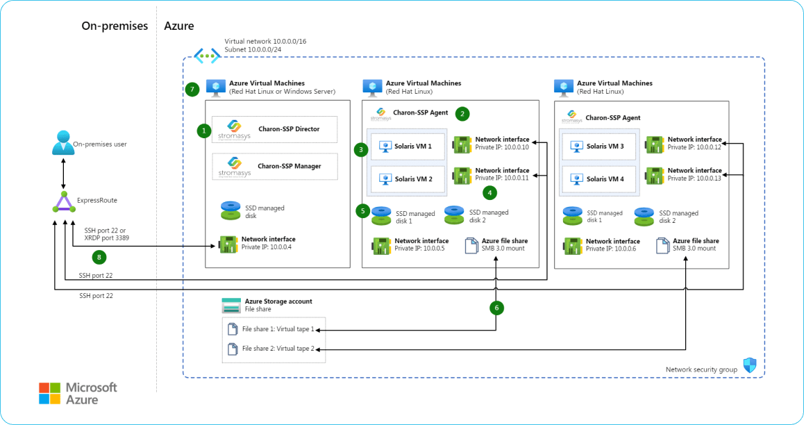 Using an example, let’s see how Charon on Azure works. Built on Stromasys and Microsoft’s excellence in emulation and cloud solution, this setup streamlines managing Solaris VMs on Azure, leveraging powerful SPARC emulation.